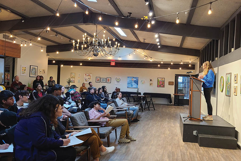 College preparation culminates in voice. Juniors craft Humans of New York–inspired narratives, then stand on stage, microphone in hand, performing their personal statements for peers, families and community members. They learn listening is an act of love and everyone has a story and know their community is one of trust and vulnerability.