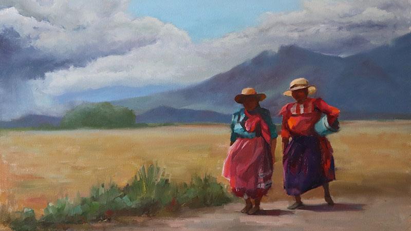 Feature photo: “Las Comadres” (oil; 20”x30”) by Gloria Cuádraz